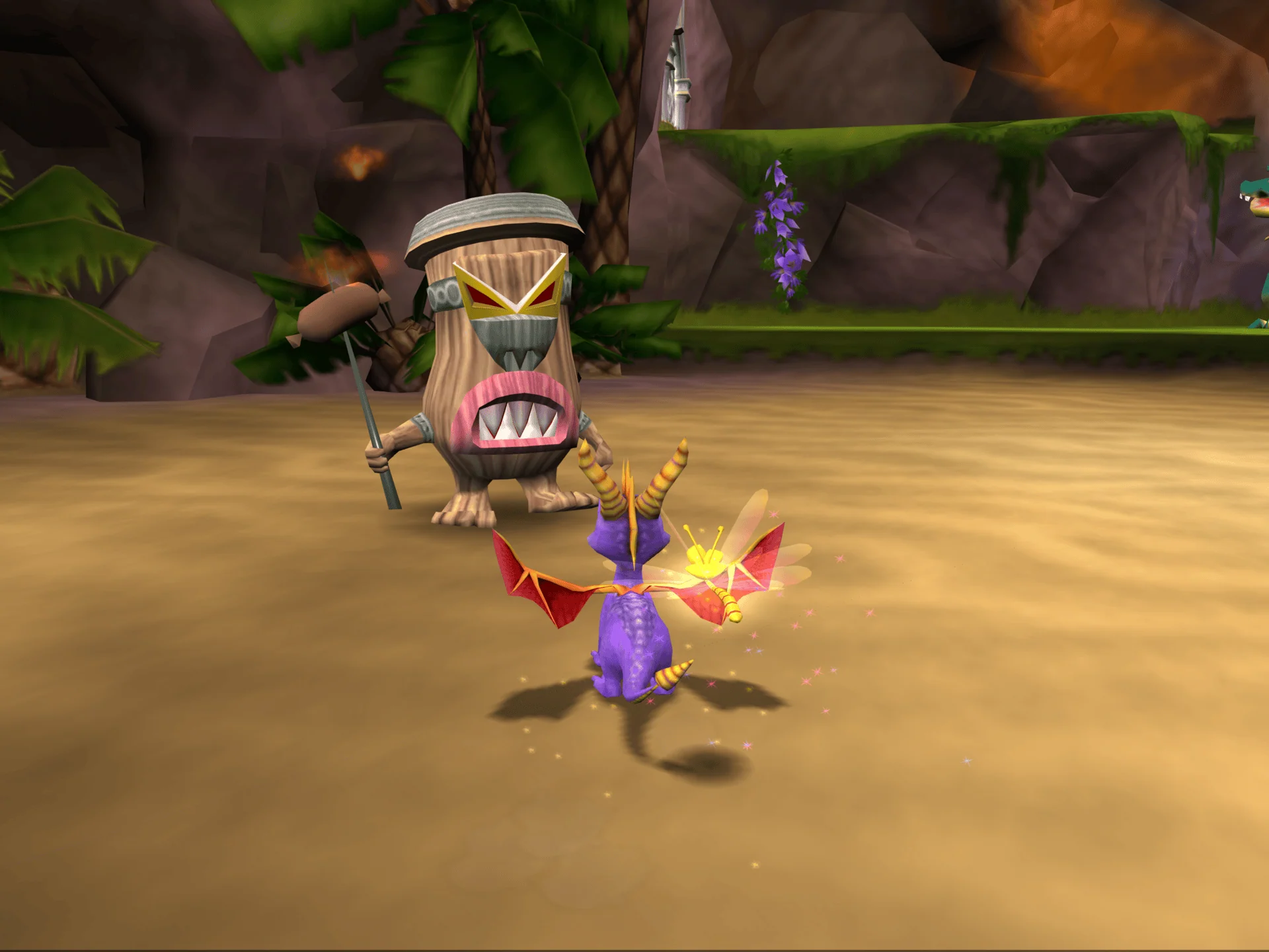 Spyro: Enter the Dragonfly loosely ties into Spyro: Year of the Dragon, with the dragon hatchlings being the eggs from YOTD. Each dragon is supposed to receive a dragonfly partner, but Ripto decides to disrupt this event. He pops in from a portal and tries to capture all the dragonflies to weaken the dragons. This backfires, and the dragonflies become scattered throughout the Dragon Realms. It’s up to Spyro to collect all the dragonflies with his new Bubble Breath ability.